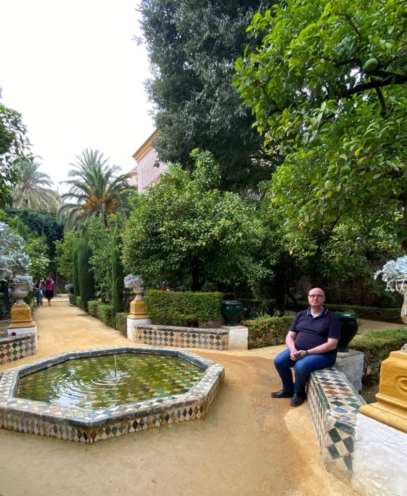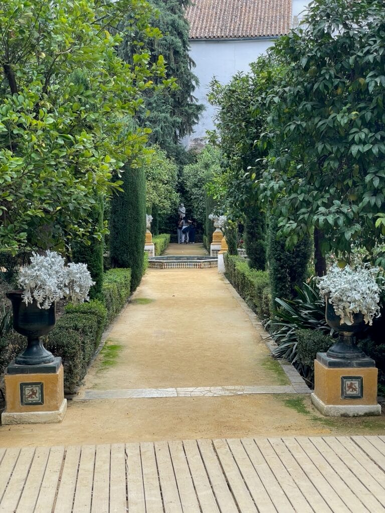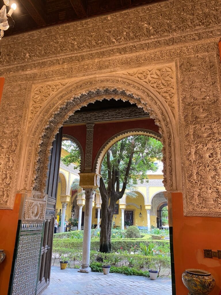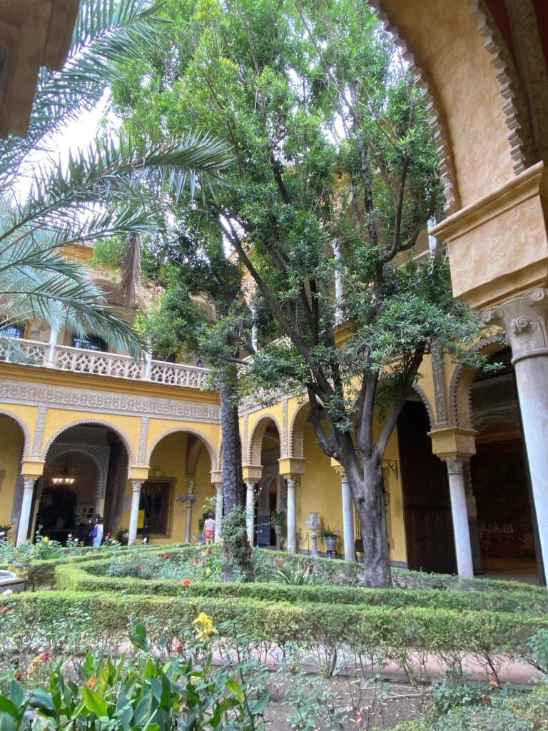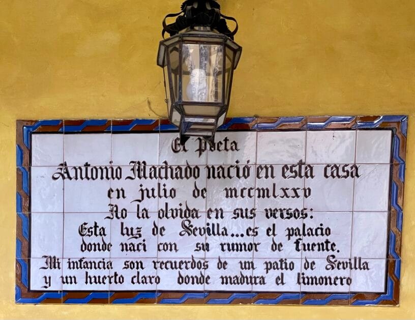Der Morgen startet bedeckt mit leichtem Nieselregen. Gabi hat trotzdem, oder gerade wegen der kühleren Temperatur, viele Vorschläge für unseren letzten Tag. Ich rechne das kurz in Kaffeepausen um und argumentiere, dass ich so viel Koffein nicht mehr gut vertrage. Also einigen wir uns auf den Palacio de las Dueñas, wo 1875 der Dichter Antonio Machado geboren wurde (von dem das Gedichtfragment oben stammt), und die königliche Tabakfabrik, in der heute ein Teil der Universität untergebracht ist.