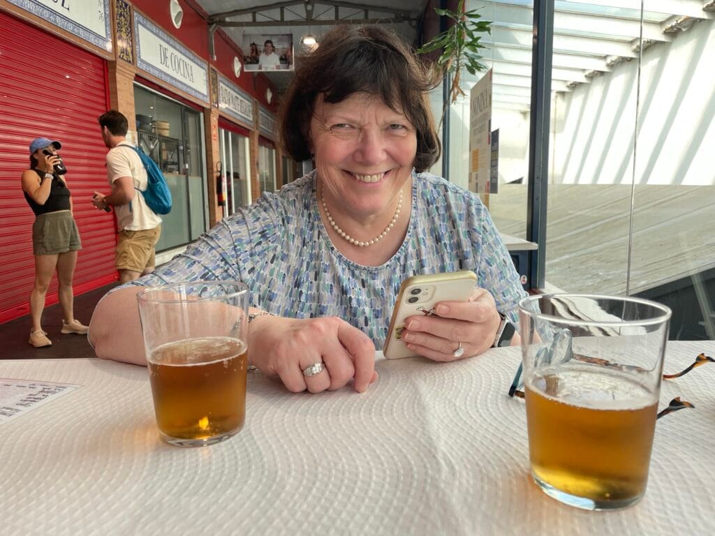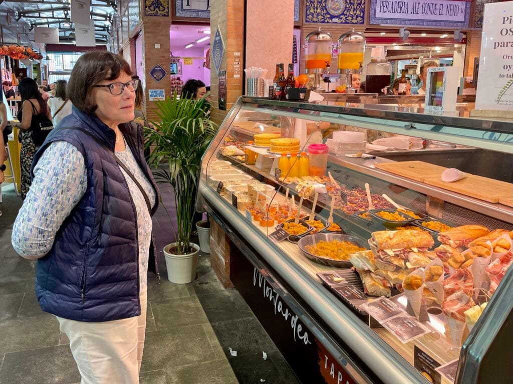 Ihr habt es sicher auch schon gesehen. Die engen Gänge im Schachbrettmuster mit überbordenden Auslagen von Früchten, Schinken, Käse, Bocadillos, Tortillas, Süßen ind Herzhaftem. Kleine Tische am Rand und Menschen die eng gefrängt sitzen, als hätte es Corona nie gegeben. Würde ich hier leben, wäre ich dort Stammgast.