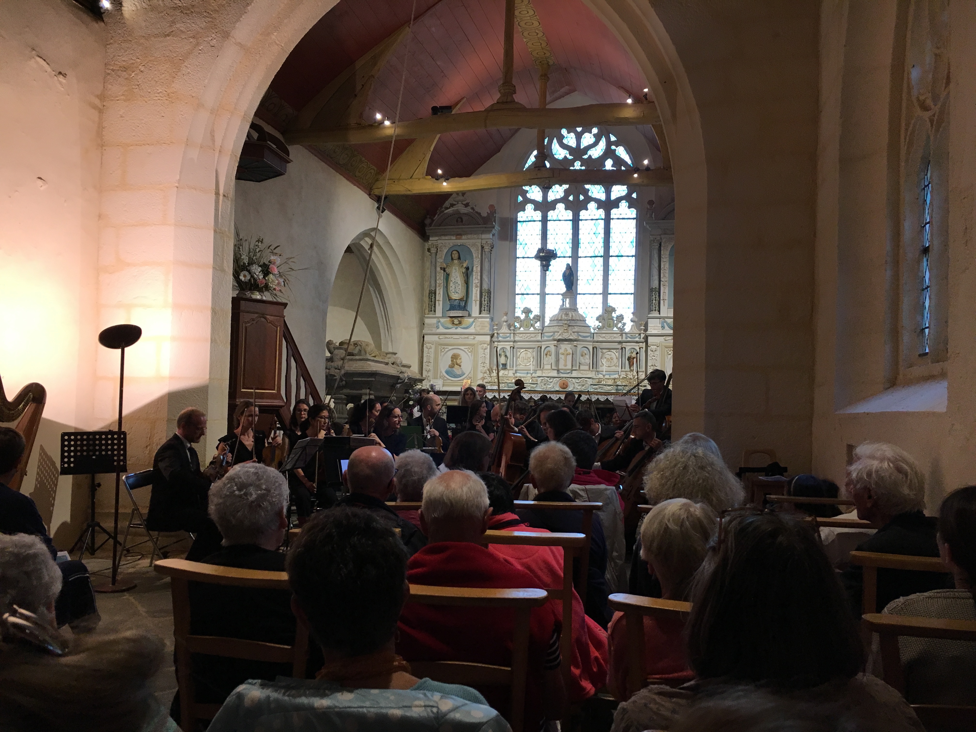 Als wir ankamen herrschte Ebbe (es gibt auf der Ile de Brehat übrigens drei Kais zum anlegen, je nachdem wie hoch der Stand des Wassers ist), das sollte man für die Rückfahrt an Zeit einplanen, da die Kais ziemlich weit auseinanderliegen und um 19.00 Uhr das letzte Schiff ablegt. Dann sind wir ein wenig auf der Insel herumgeschlendert, mit netten kleinen Häusern und wunderschönen Blumengärten, haben noch Mittaggegessen und sind dann langsam zurück zum Kai für die Rückfahrt. Jetzt bereiten wir uns auf das abendliche Konzert vor, das von Marc und Michèle organisiert wurde. 40 Musiker spielen Mozart und Mendelsohn. Wir freuen uns schon und sind gespannt auf die Kapelle.