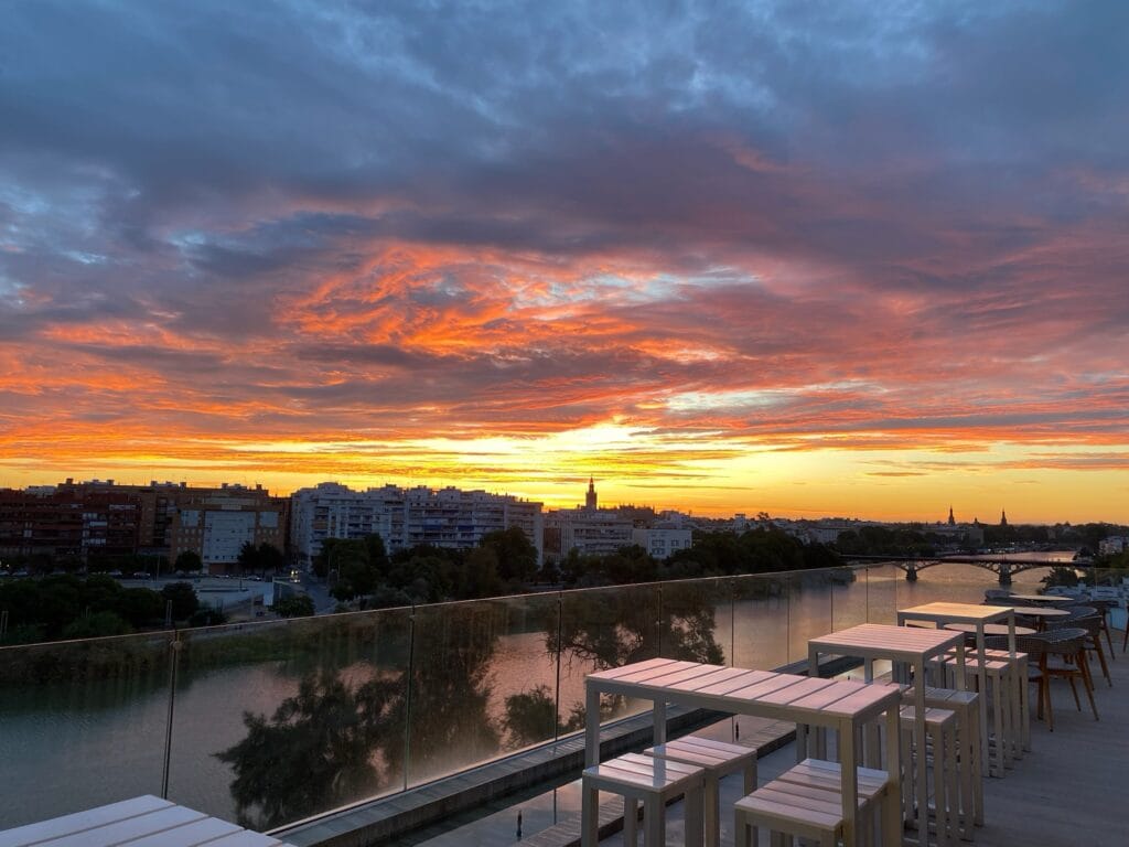 Den restlichen Sonntag haben wir gelesen und gedöst. Ich habe „Asterix in Spanien“, den ich für die Illustration des Flamenco-Abends herausgesucht hatte, mit viel Vergnügen zu Ende gelesen. Olé! Dann war es Zeit für den Aperitif in der Rooftop-Bar, um anschließend zum Restaurant zu bummeln, das wir uns für heute Abend ausgesucht haben.